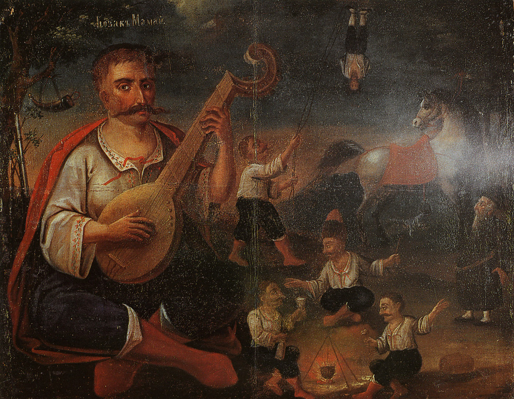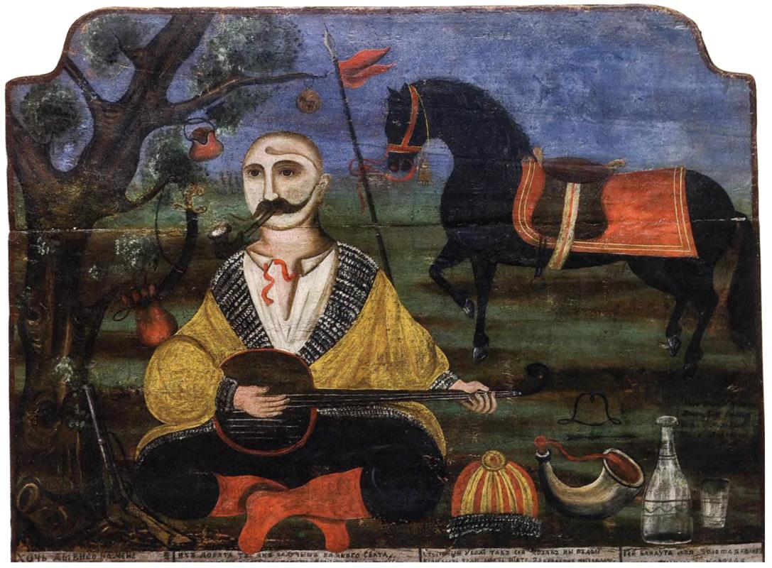 Який музичний інструмент тримає козак?