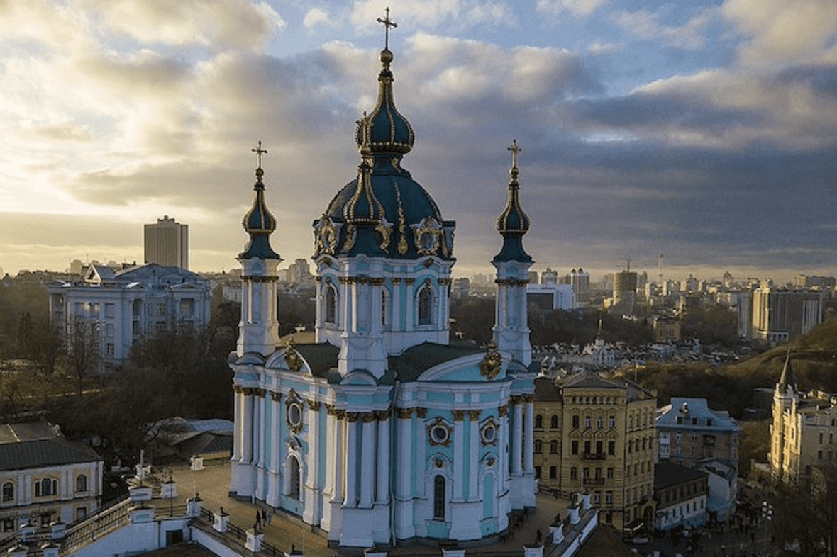 З дитинця відкривається чудовий краєвид на Андріївську церкву — одну з найпопулярніших пам’яток Києва. У декорі фасадів архітектор Ф. Растреллі вперше використав чавунне литво, з якого бути відлити капітелі, орнаменти та прикраси в стилі бароко.