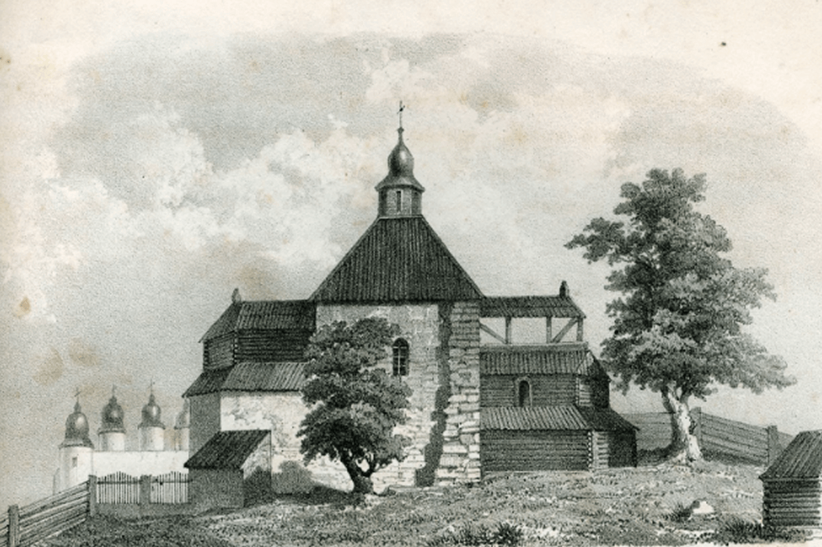 Підказка Підійдіть до реконструкції капища, що розташований перед входом до НМІУ