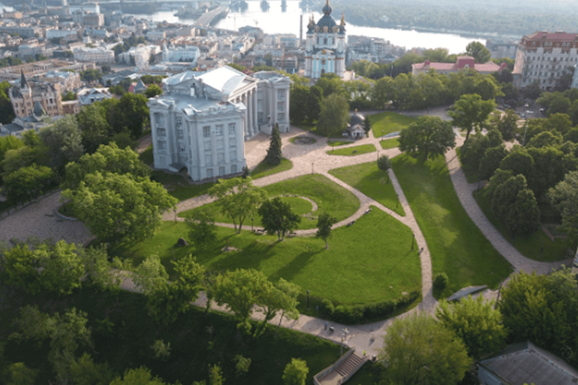 Підказка Пройдіть до оглядового майданчику НМІУ, що розташовується за будівлею музею.