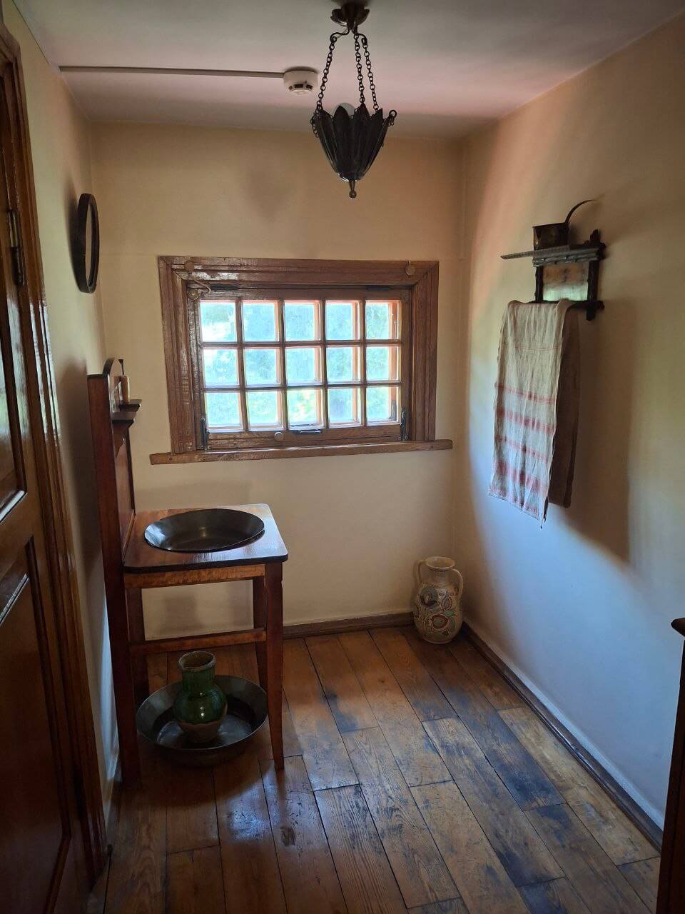 Загляньте до невеличкої кімнати з рукомийником. Що з переліченого точно могло бути в комплекті для особистої гігієни того часу?