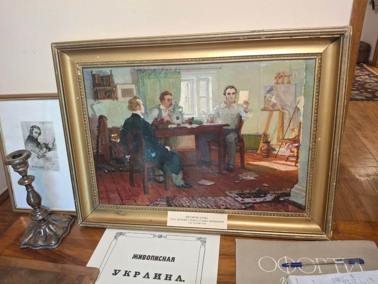 На стінах кімнати розміщені краєвиди Старого Києва та фотографії Тараса Шевченка, зроблені у фотоательє Івана Гудовського, одному з перших у Києві на Хрещатику.
