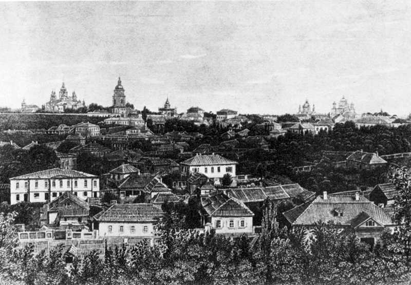 Розгляньте літографію за малюнком Михайла Сажина - «Краєвиди Старого Києва», праворуч при вході в кімнату.