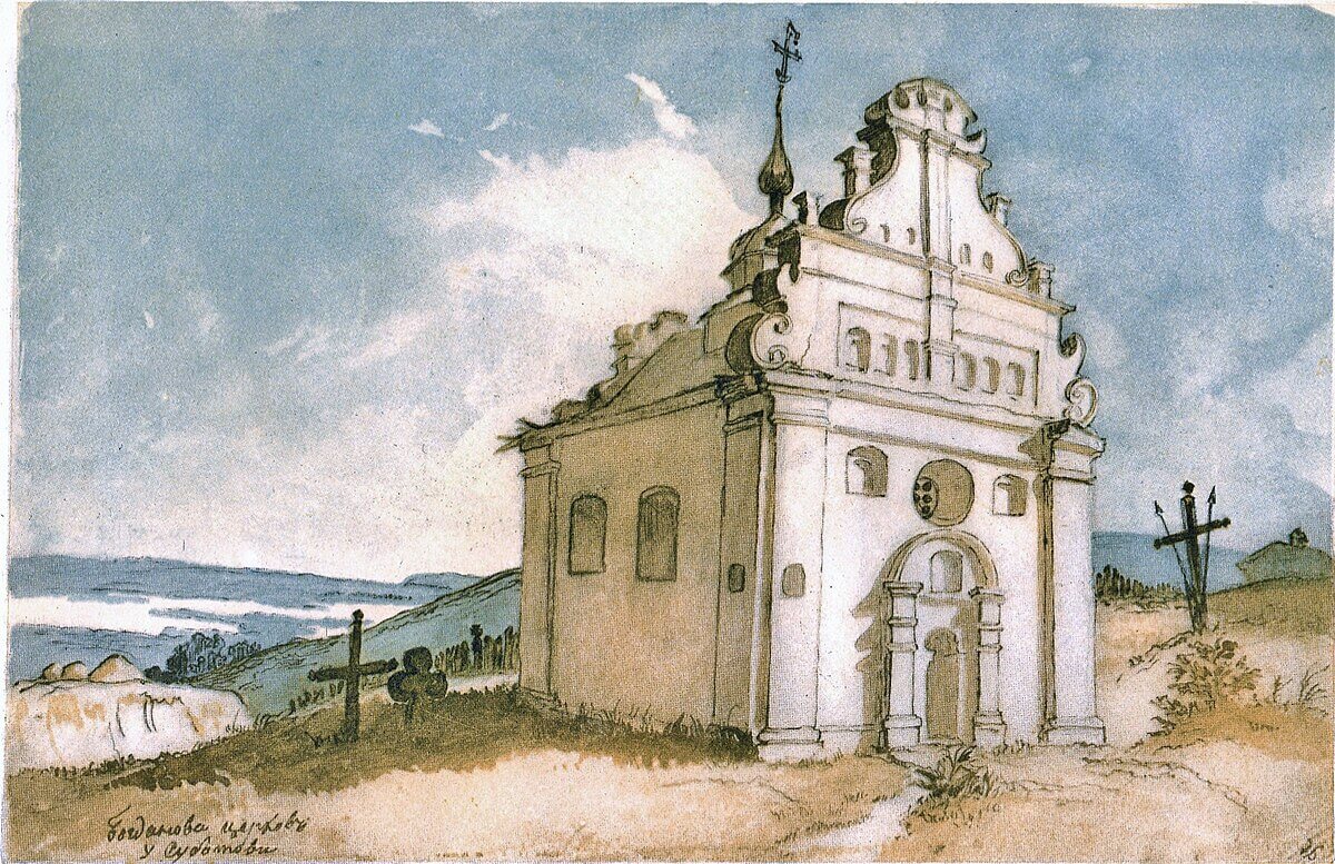 З літа 1845 року Шевченко почав співпрацю з Київською археографічною комісією, що досліджувала й документувала історичні пам’ятки. Подорожуючи Україною як художник Комісії, він створював пейзажі аквареллю та сепією, які увійшли до знаменитого альбому 1845 року. Серед них — зображення Богданової церкви в Суботові, що надихнуло його на написання поезії.